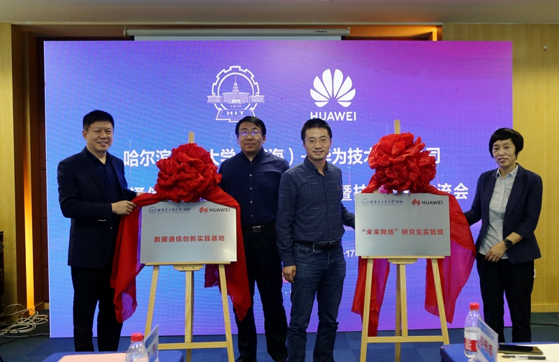 9月24日下午,哈尔滨工业大学(威海)-华为技术有限公司数据通信创新实践基地暨“未来网络”研究生实验班校区揭牌。威海校区党委书记张淑娣、哈工大计算学部主任刘挺、华为南京研究所所长徐胜军参加揭牌仪式并致辞。仪式由威海校区副校长姜永远主持。来自哈工大一校三区计算学部的教师代表和威海校区、华为相关职能部门负责人及技术专家参加揭牌仪式。